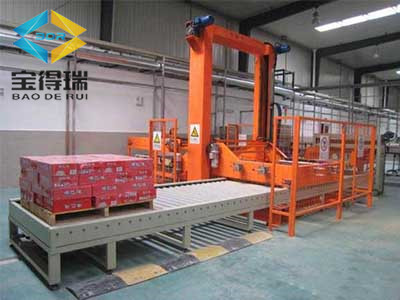 Palletizing machine is to have been loaded into the container carton, according to a certain arrangement of code on the tray, the automatic stacking, stacking multi-storey, and then automatically transported to the warehouse storage. Equipment using PLC and touch screen control, easy to operate, can greatly save manpower and reduce labor intensity.